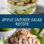 A sweet and creamy Apple Snicker Salad combining crisp Granny Smith apples, chopped Snickers bars, and fluffy whipped cream with vanilla and powdered sugar. This no-cook, crowd-pleasing dessert salad is easy to prepare and perfect for potlucks or family gatherings.