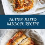 This Butter-Baked Haddock recipe features tender and flaky haddock fillets topped with a flavorful buttery, lemon, and garlic mixture and a crispy Parmesan breadcrumb crust. Perfectly baked to golden brown perfection, it makes for an easy, elegant, and delicious seafood dinner that serves 4.