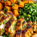 Start with a base of cooked quinoa or rice if using, then layer on generous portions of the spiced chicken and roasted sweet potatoes. Scatter diced avocado over the top for creaminess and sprinkle fresh cilantro to introduce that bright, herbal note. Finish off with a squeeze of lime to tie all the flavors together in a zesty, vibrant bowl that’s as pretty as it is delicious.