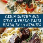 A rich and flavorful Cajun Shrimp and Steak Alfredo Pasta combining tender steak, succulent shrimp, and creamy Parmesan Alfredo sauce with a spicy Cajun kick, perfect for a satisfying 30-minute dinner that serves four.