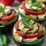 This Caprese Stuffed Avocados recipe offers a fresh and vibrant twist on the classic Italian Caprese salad by using creamy ripe avocados as edible bowls. Filled with a colorful mix of salad greens, juicy tomatoes, fresh mozzarella, and flavorful basil pesto, drizzled with balsamic reduction, it’s a quick, no-cook appetizer or light meal perfect for warm days and easy entertaining.