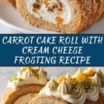 This Carrot Cake Roll with Cream Cheese Frosting Filling is a delightful and moist dessert featuring a spiced carrot cake rolled with a rich, creamy cream cheese frosting. Perfect for gatherings or special occasions, this recipe combines classic warm spices like cinnamon, nutmeg, and ginger with the freshness of grated carrots and the tangy sweetness of cream cheese filling, all baked into a tender, fluffy sponge rolled to perfection.