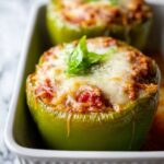 This Cheesy Baked Chicken Stuffed Peppers recipe features green bell peppers filled with a savory mixture of ground chicken, rice, and aromatic spices, all topped with melted mozzarella cheese. Baked to perfection, these stuffed peppers make a comforting and wholesome meal that’s both flavorful and satisfying.