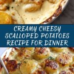 Cheesy scalloped potatoes are a creamy and comforting side dish featuring thinly sliced potatoes baked in a rich, cheesy sauce. This classic American recipe combines tender potatoes with a golden, bubbly cheese crust, making it perfect for holiday dinners, potlucks, or any hearty family meal.