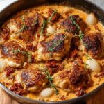 This Chicken & Nduja Bake is a flavorful Italian dish featuring tender boneless chicken thighs cooked in a spicy, aromatic sauce made with nduja sausage, bell peppers, zucchini, and tomatoes. Oven-baked to perfection, the dish combines smoky paprika and garlic with fresh vegetables, resulting in a comforting, gluten-free one-pan meal that’s perfect for weeknight dinners.