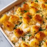 8. Make the Topping: In a small bowl, combine the melted butter, panko breadcrumbs, and dried parsley. Sprinkle this mixture evenly over the top of the casserole to add a crunchy crust.