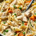 A comforting Chicken Pot Pie Noodle dish featuring tender egg noodles smothered in a creamy sauce loaded with sautéed onions, garlic, peas, carrots, and juicy chicken breast. This recipe brings all the classic flavors of chicken pot pie in a quick and easy skillet meal perfect for family dinners.