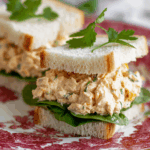 Elevate your presentation by arranging the Chicken Salad Finger Sandwiches Recipe on a tiered serving platter. Interspersing edible flowers or colorful lettuce leaves can add to the visual appeal. You might also try cutting the sandwiches into charming shapes using cookie cutters for themed parties or children’s gatherings — a simple technique that makes all the difference.