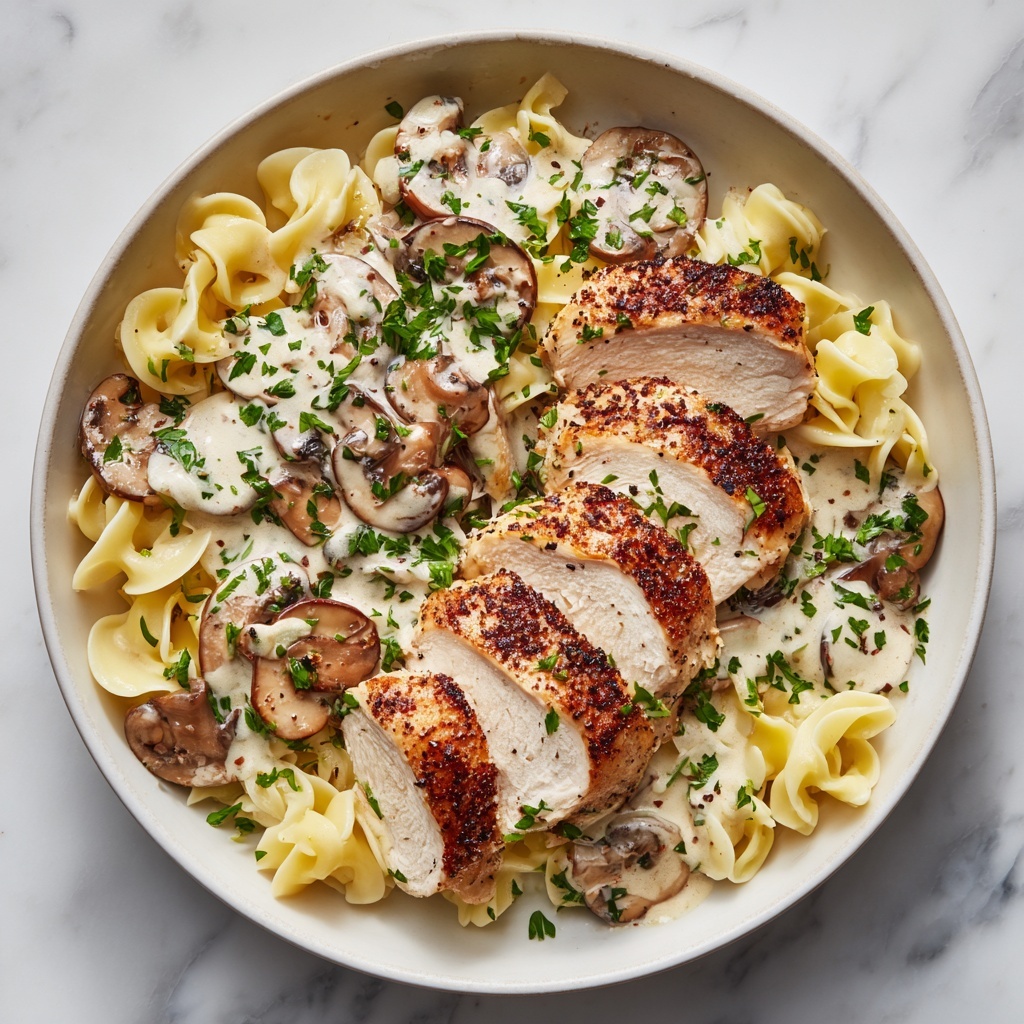 Try serving this recipe on a warm plate with a sprinkle of red pepper flakes for a little heat or alongside garlic bread to soak up any leftover buttery sauce. For a fun twist, place the chicken and noodles in a beautiful shallow bowl and garnish with edible flowers or microgreens for an elegant touch.