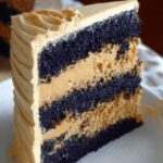 - Assemble the Cake – First Layer: Place one chocolate cake layer on a cake stand or serving plate. Spread half of the pumpkin cheesecake filling evenly over the layer.