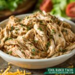 These Cool Ranch Chicken Tacos are an easy and flavorful slow cooker recipe featuring tender chicken breasts seasoned with taco and ranch seasoning. Perfect for a casual weeknight dinner, the chicken cooks low and slow to absorb the bold, zesty flavors, making a delicious taco filling that pairs well with your favorite toppings and tortillas.