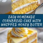 - Serve: Serve slices of warm cornbread cake topped generously with the whipped honey butter for a deliciously sweet and creamy treat.