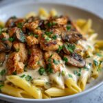 This Creamy Chicken & Mushroom Pasta is a delicious and comforting dish featuring tender cubed chicken breasts, sautéed mushrooms, and a rich, velvety cream sauce with Parmesan cheese. Ready in just 30 minutes, this recipe combines simple ingredients into a satisfying meal perfect for weeknight dinners or cozy weekends.