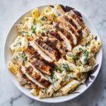 Once the chicken has soaked up all those delicious marinade flavors, it’s time to grill. Warm your grill to medium-high heat and cook the chicken until it’s perfectly done through — juicy but with a nice char that adds incredible smoky depth. After grilling, let the chicken rest for a few minutes to lock in those juices. Then slice the breasts into tender strips, ready to sit atop the pasta.