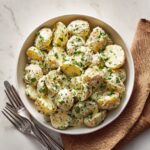 This creamy potato salad is a classic American side dish perfect for summer picnics and gatherings. Made with tender Yukon Gold potatoes, a tangy mayonnaise and Dijon mustard dressing, and complemented by chopped hard-boiled eggs, celery, and red onion, it delivers a smooth, flavorful, and satisfying taste. Fresh dill or parsley adds a bright, herbal finish.