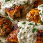 This Creamy Ranch Chicken recipe features tender boneless, skinless chicken breasts cooked in a rich and flavorful ranch cream sauce. The sauce combines cream cheese, heavy cream, chicken broth, Parmesan, and ranch seasoning to create a smooth, comforting dish perfect for a quick and easy weeknight dinner. Garnished with fresh parsley, it pairs beautifully with mashed potatoes, pasta, or steamed vegetables for a complete meal.