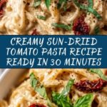 A rich and flavorful creamy sun-dried tomato pasta featuring tender pasta coated in a luscious sauce made from sun-dried tomatoes, garlic, heavy cream, and Parmesan cheese, enhanced with fresh basil and a touch of heat from red pepper flakes. This hearty yet elegant dish comes together in just 30 minutes, perfect for a satisfying weeknight dinner.
