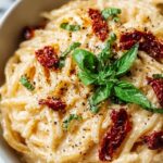 A rich and flavorful creamy sun-dried tomato pasta featuring tender pasta coated in a luscious sauce made from sun-dried tomatoes, garlic, heavy cream, and Parmesan cheese, enhanced with fresh basil and a touch of heat from red pepper flakes. This hearty yet elegant dish comes together in just 30 minutes, perfect for a satisfying weeknight dinner.