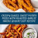 Crispy Baked Sweet Potato Fries with Roasted Garlic Tahini Yogurt Dip Recipe
