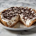 This Deep Dish Cookie Dough Cheesecake Pizza combines the best of two beloved desserts: cookie dough and creamy cheesecake. Featuring a golden-baked cookie dough crust topped with a smooth, sweet cheesecake layer and garnished with mini chocolate chips and cookie dough chunks, it’s a decadent treat perfect for sharing with friends and family.