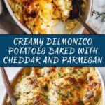 Deliciously creamy and cheesy Delmonico Potatoes baked to golden perfection, featuring layers of tender sliced russet potatoes smothered in a rich mixture of heavy cream, cheddar, and Parmesan cheese, enhanced with sautéed onions and garlic. Perfect as a comforting side dish for any meal.