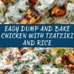 This Dump-and-Bake Chicken Tzatziki with Rice recipe offers a simple and flavorful one-pan meal perfect for busy weeknights. Tender, seasoned chicken breasts bake atop a bed of fragrant long-grain rice infused with chicken broth, all topped with creamy tzatziki sauce. Garnished with fresh cucumber, parsley, and a squeeze of lemon, this dish combines Greek-inspired flavors for a wholesome and satisfying dinner.