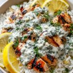 This Dump-and-Bake Chicken Tzatziki with Rice recipe offers a simple and flavorful one-pan meal perfect for busy weeknights. Tender, seasoned chicken breasts bake atop a bed of fragrant long-grain rice infused with chicken broth, all topped with creamy tzatziki sauce. Garnished with fresh cucumber, parsley, and a squeeze of lemon, this dish combines Greek-inspired flavors for a wholesome and satisfying dinner.