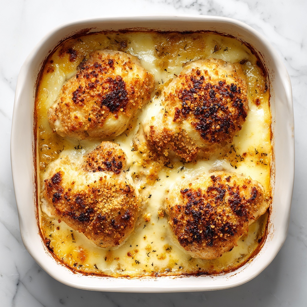 This Easy Baked Caesar Chicken recipe features tender, boneless chicken breasts topped with creamy Caesar dressing, melted provolone cheese, and a crunchy Caesar-style crouton topping. Baked to golden perfection, this dish combines classic Caesar salad flavors in a hearty and satisfying baked entree that’s perfect for weeknight dinners or entertaining guests.