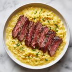 This Flank Steak with Creamy Orzo recipe combines perfectly seared flank steak with a luscious, garlicky orzo side enriched with spinach, sun-dried tomatoes, and a creamy half-and-half sauce. Ready in just 30 minutes, this dish balances hearty protein with a flavorful, comforting pasta base, making it ideal for a satisfying weeknight dinner.