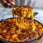 A comforting and indulgent twist on classic macaroni and cheese, this French Onion Soup Mac & Cheese combines deeply caramelized onions, a rich beef broth-based cheese sauce with Gruyère, cheddar, and Parmesan, and tender elbow macaroni. Finished with an optional broiled baguette topping for added texture, this dish delivers layers of savory, cheesy flavor perfect for a cozy meal.