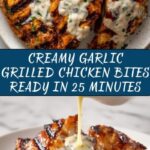 Delicious grilled chicken bites marinated in a flavorful blend of spices and lemon juice, served with a rich and creamy garlic Parmesan sauce. This quick and easy recipe is perfect for a weeknight dinner or casual gatherings, delivering tender, juicy chicken with a heavenly garlicky cream sauce.