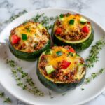 These zucchini boats pair beautifully with simple sides like fluffy rice or a crisp green salad. If you’re feeling indulgent, creamy guacamole and crunchy tortilla chips make the perfect companions, rounding out your meal with additional textures and flavors.