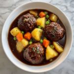This Hearty Meatball Stew is a comforting, flavorful dish featuring tender beef meatballs simmered in a savory tomato and beef broth with vegetables like carrots and potatoes. Perfect for a cozy family dinner, it’s filling, easy to make, and packed with wholesome ingredients.