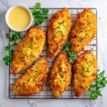 Keep it simple and fresh with a sprinkle of chopped fresh parsley or chives. These herbs add a pop of vibrant green color and a fresh flavor contrast to the rich, crispy tenders. For an extra zing, a drizzle of homemade or store-bought honey mustard sauce brings everything full circle.