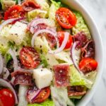 A flavorful and hearty Italian Grinder Salad featuring a vibrant mix of iceberg lettuce, cured meats, cheeses, and a tangy homemade dressing. Perfect for a quick lunch or light dinner, this salad combines classic deli ingredients with a zesty dressing made from mayonnaise, red wine vinegar, and banana pepper juice.