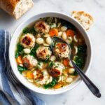 This classic Italian Wedding Soup features tender homemade meatballs baked to perfection, simmered in a flavorful chicken broth with fresh vegetables, kale, and delicate acini di pepe pasta. A comforting and hearty soup, it’s perfect for family dinners or special occasions, finished with a sprinkle of grated Parmesan for an authentic touch.