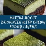 - Serve: Once cooled, lift the brownies out using the parchment paper and slice into 9 squares. Enjoy the delightful combination of fudgy brownies and chewy matcha mochi topping.