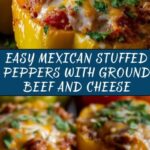 A delicious and hearty Mexican Stuffed Peppers recipe featuring bell peppers filled with a savory mixture of ground beef, rice, black beans, corn, and cheese. This flavorful dish is baked to perfection and topped with melted Mexican blend cheese and fresh cilantro, making it a perfect gluten-free main course for a satisfying dinner.