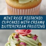 Delightfully delicate Mini Rose Pistachio Cupcakes featuring a moist pistachio-infused batter enhanced with fragrant rose water. Topped with a silky rose buttercream frosting and garnished with crunchy chopped pistachios, these mini treats are perfect for elegant gatherings or sweet everyday indulgences.
