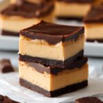 Delight in these no-bake peanut butter buckeye bars, combining a rich and creamy peanut butter base with a smooth chocolate topping. Perfectly sweet and easy to prepare, these bars require no oven time, making them an ideal quick dessert or snack with classic American flavors inspired by Ohio buckeyes.
