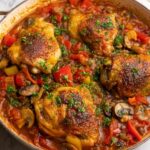 This One-Pan Chicken Cacciatore with Peppers is a hearty and flavorful Italian-inspired dish featuring tender chicken thighs simmered with bell peppers, onions, garlic, and aromatic herbs. Prepared in a single skillet, this recipe offers a delicious and easy weeknight dinner loaded with vibrant colors and rich flavors.