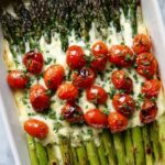 This Oven Roasted Asparagus with Parmesan and Tomatoes is a simple yet elegant side dish featuring tender asparagus spears and blistered cherry tomatoes roasted to perfection. Enhanced with garlic, olive oil, and a generous sprinkle of Parmesan cheese, this recipe delivers a burst of fresh, vibrant flavors perfect for any meal.