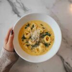 Turn the heat down to low and stir in the freshly grated Parmesan cheese gradually, letting it melt completely into the broth. This is where the soup becomes luxuriously creamy and irresistibly cheesy. If you’re using fresh spinach or kale, stir it in now and cook for another 2 to 3 minutes until the greens wilt, adding freshness and a lovely pop of green.