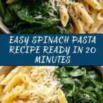 A quick and flavorful pasta dish featuring sautéed garlic and fresh spinach, tossed with perfectly cooked pasta and a touch of Parmesan cheese for a delicious, nutrient-rich meal ready in just 20 minutes.