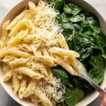 A quick and flavorful pasta dish featuring sautéed garlic and fresh spinach, tossed with perfectly cooked pasta and a touch of Parmesan cheese for a delicious, nutrient-rich meal ready in just 20 minutes.