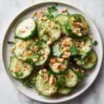 A refreshing and spicy Peanut & Chili Oil Cucumber Salad that’s quick to prepare and bursting with flavor. Thinly sliced cucumbers are tossed in a tangy and mildly sweet chili oil dressing, topped with crunchy roasted peanuts, making it a perfect appetizer or side dish for any meal.