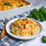 Pimento Cheese Chicken Spaghetti is a creamy, cheesy baked pasta dish that combines tender cooked chicken, tangy pimentos, and rich cheddar cheese sauce. Perfect for a comforting family dinner, this casserole blends classic Southern flavors with hearty spaghetti, all baked to golden cheesy perfection in under an hour.