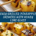 Delicious and easy-to-make Pineapple Skewers featuring fresh pineapple chunks marinated in a honey-lime-cinnamon glaze and grilled to perfection. This tropical, vegan, and gluten-free side dish or appetizer offers a sweet and slightly tangy flavor with a hint of caramelization from the grill. Perfect for BBQs, light desserts, or as a refreshing addition to any meal.