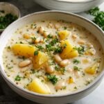 Ladle your warm, comforting potato and bean soup into bowls. For a final flourish, sprinkle some fresh parsley or chives over the top. Not only does this add a burst of color, but it also gives a lovely fresh flavor that’s simply irresistible. Now you’re ready to enjoy one of the coziest, most satisfying soups you’ll ever make!