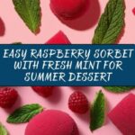 Fresh mint leaves make the perfect garnish, adding a burst of green that complements the rich pink of the sorbet. You can also sprinkle a few whole raspberries on top for a pretty and tasty touch that’s bound to impress.